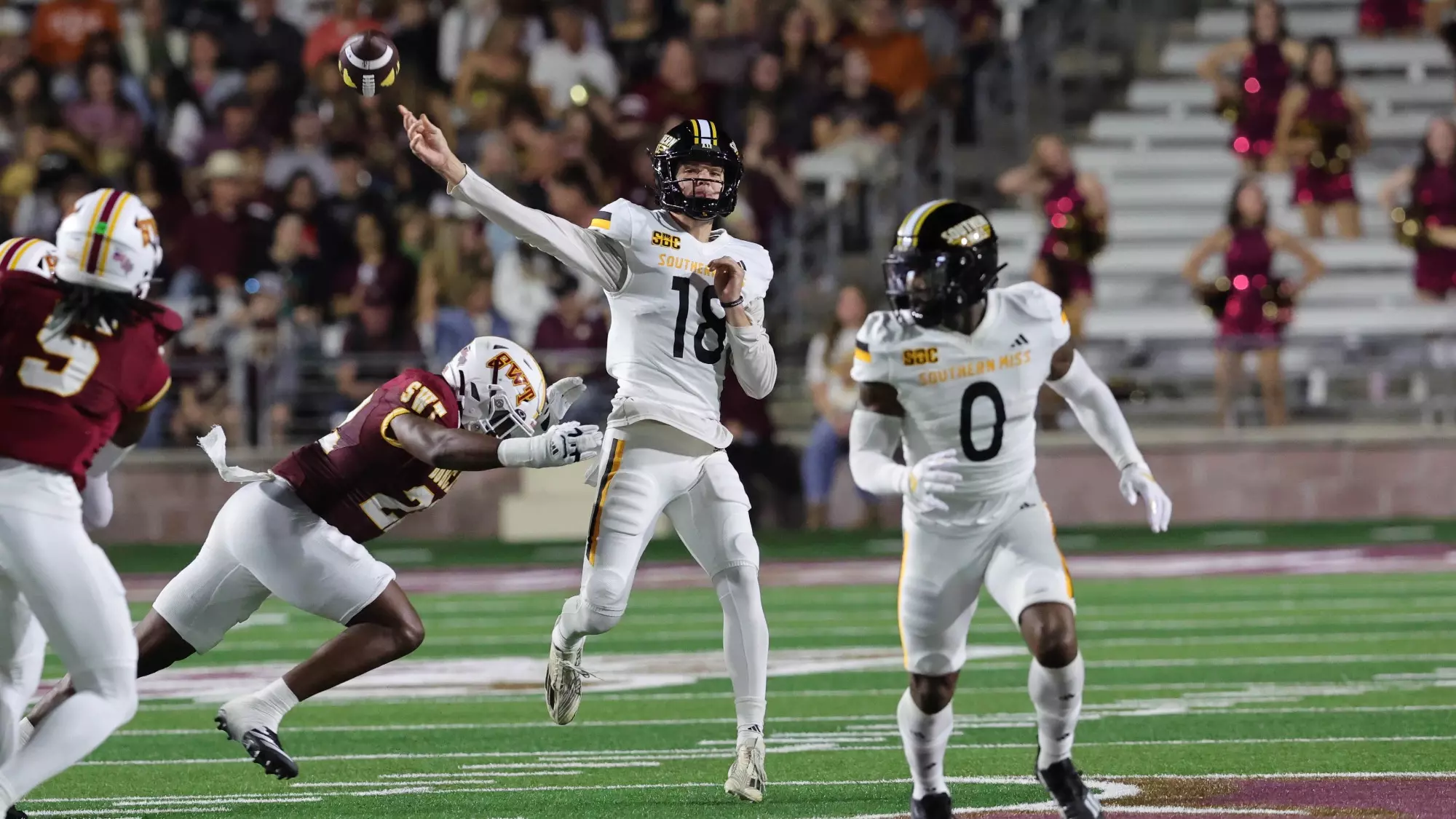 In the Texas State vs Southern Miss matchup, the Bobcats showed patience and balance. Their drives were methodical — combining short passes, designed runs, and well-timed quarterback scrambles. Jackson’s efficiency under center helped sustain long possessions, and Pare’s power running kept defenses honest.